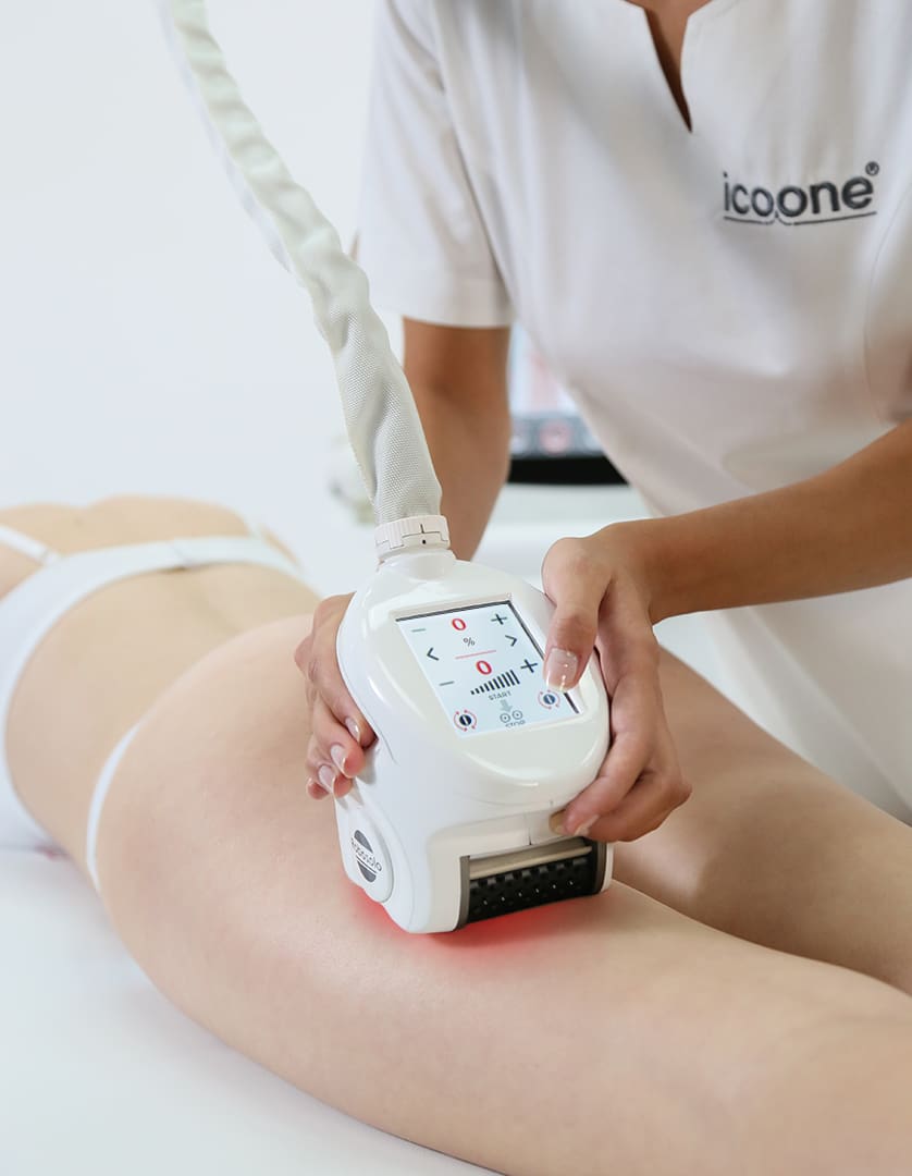 Traitement anti-cellulite ; Remodelage du corps ; Drainage lymphatique ; Traitement des vergetures ; Traitement des cicatrices ; Raffermissement et tonification de la peau ; Massage relaxant ; icoone® pendant la grossesse et après l'accouchement ; Lifting du visage sans chirurgie ; Raffermissement du visage ; Revitalisation de la peau ;